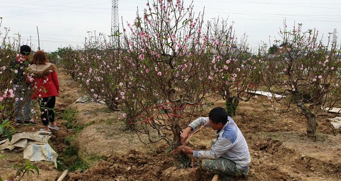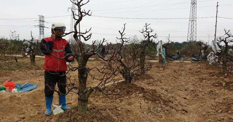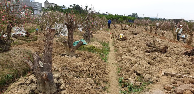 Ông Kỳ mới bán được chừng hơn 100 gốc, còn vài chục gốc vẫn có thể bán. Hơn trăm gốc đào còn lại đa số hoa đã tàn, không bán được cho ai nên gia đình ông tranh thủ cắt tỉa cho năm sau.