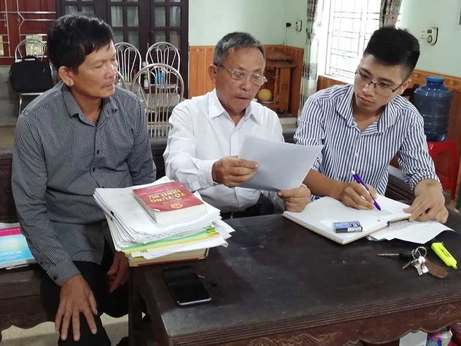 Ông Đào Tất Quyền (bên trái) cùng người thân của mình trong một lần trao đổi với PV về nội dung vụ án. Ảnh: PT