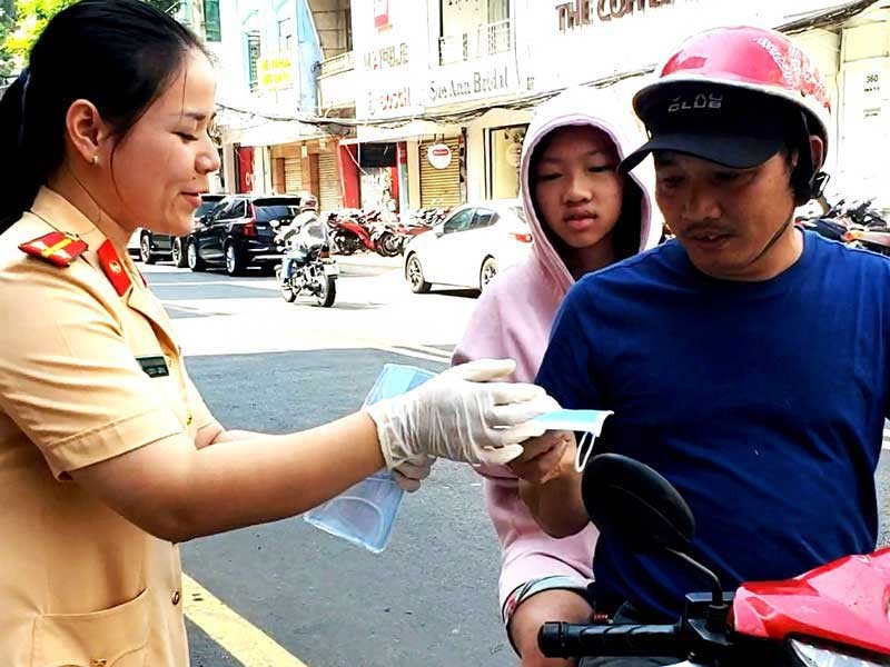 CSGT TP.HCM phát khẩu trang miễn phí cho dân. Ảnh: TỰ SANG