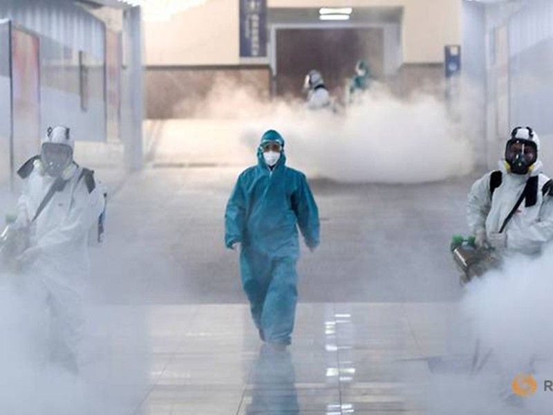 Người tình nguyện mặc đồ bảo hộ xịt tẩy trùng tàu điện ở tỉnh Hồ Nam (Trung Quốc) ngày 4-2. Ảnh: REUTERS