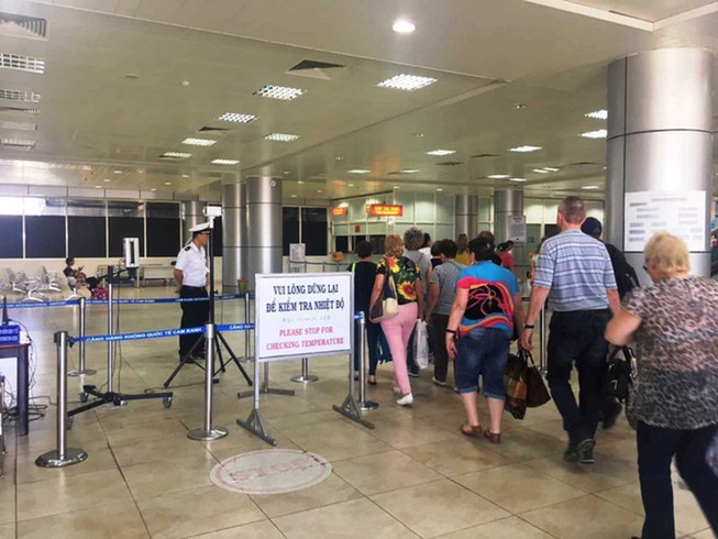 Kiểm tra thân nhiệt tại Cảng hàng không quốc tế Cam Ranh. Ảnh: PV
