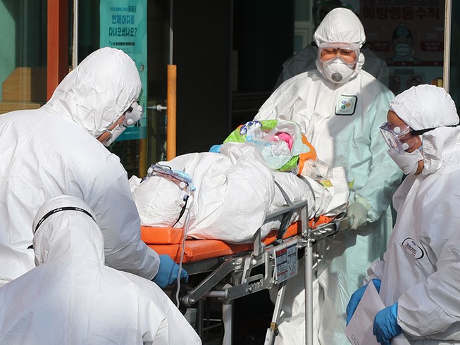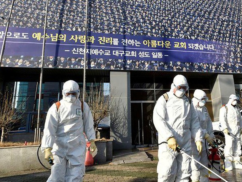 Các nhân viên y tế khử trùng tại TP Daegu. Nguồn: REUTERS
