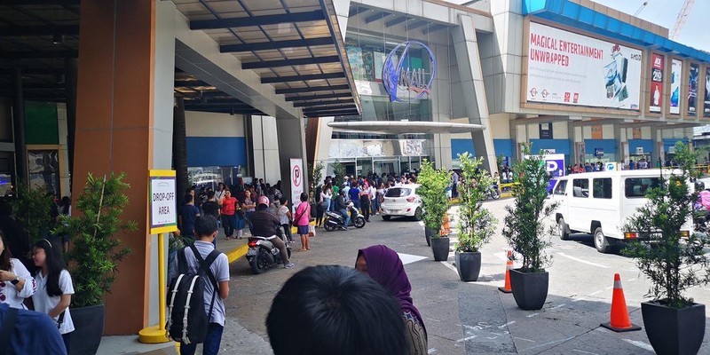 Khung cảnh bên ngoài trung tâm thương mại Virra khi cảnh sát đến phong tỏa hiện trường. Ảnh: MANILA BULLETIN