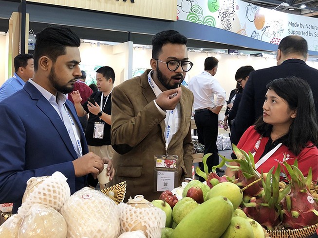 Bất chấp dịch COVID-19, nhiều công ty nông nghiệp vẫn ăn nên làm ra. Trong ảnh: Khách hàng tìm hiểu về nông sản Việt. Ảnh: QUANG HUY