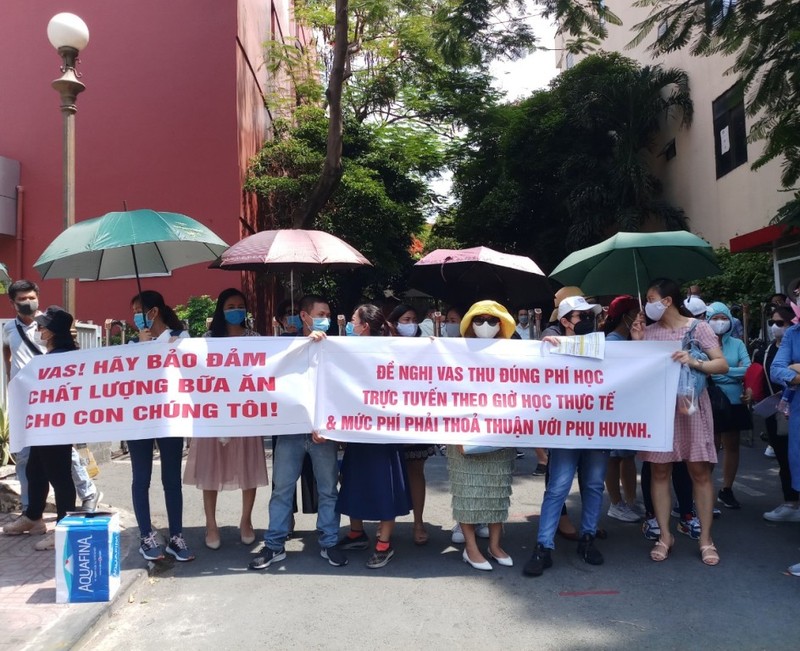 Ngày 14-5, phụ huynh Trường quốc tế Việt Úc tiếp tục kéo lên cơ sở 3/2 (quận 10) yêu cầu được đối thoại với nhà trường. Ảnh: NQ