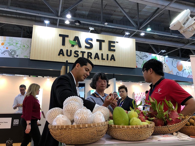 Sử dụng mã số mã vạch trên hàng hóa là thỏa thuận dân sự giữa các doanh nghiệp. Trong ảnh: Giới thiệu trái cây xuất khẩu của Việt Nam với khách nước ngoài. Ảnh: QUANG HUY