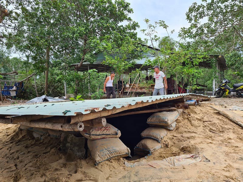 • Người dân Quảng Nam đào hầm tránh bão (ảnh): Từ sáng 27-10, gia đình bà Nguyễn Thị Mau (66 tuổi, ngụ thôn Hà Bình, xã Bình Minh, huyện Thăng Bình) huy động con cái, người thân đổ cát vào bao dựng hầm tránh bão. “Bình thường bão cấp 7, cấp 8 thì không cần làm hầm nhưng mấy ngày nay nghe dự báo bão lớn, nhà không kiên cố nên phải làm hầm tránh bão. Đây là lần thứ hai gia đình tôi làm hầm kể từ cơn bão Xangsane năm 2006” - bà Mau nói. • 5 tháng tuổi, 4 lần tránh bão lũ (ảnh): Con gái của chị Ngô Thị Thanh Truyền (34 tuổi, ngụ thôn An Hải, thị trấn Thuận An, huyện Phú Vang, Thừa Thiên-Huế) mới được năm tháng tuổi nhưng đã trải qua bốn lần đi tránh bão lũ cùng mẹ. Chị Truyền cho biết từ khi bão số 5 vào bờ khiến ngôi nhà đang ở bị tốc mái, chị và con gái phải đến ở nhà người thân, sau đó lại đến bão số 8. Khi nghe tin bão số 9 vào, để an toàn mẹ con chị đã lên trú bão tập trung ở Trường THCS Thuận An. Cùng cảnh ngộ, chị Phan Thị Thu Lan (30 tuổi, ở thị trấn Thuận An) cũng bồng con nhỏ mới năm tháng tuổi đi chạy bão. • Người dân Đà Nẵng dùng container chắn gió (ảnh), chằng chống nhà cửa bằng những thanh nhôm, cọc gỗ để chống bão. Cụ thể, chủ các cửa hàng, khách sạn trên các đường Lê Duẩn, Bạch Đằng (TP Đà Nẵng)… đã chằng chống bằng những cọc gỗ, thanh sắt. Nhiều khách sạn trên đường Phạm Văn Đồng (quận Sơn Trà) thuê cả container để chắn gió, gia cố cửa ra vào bằng cách đóng ván gỗ, dùng vật dụng chèn trước cửa nhà để tạo độ kiên cố trước gió bão… |