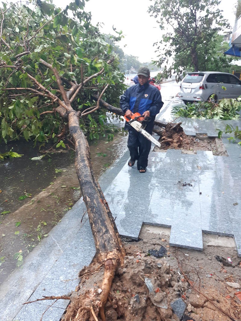 Tại TP Nha Trang, ngay từ sáng sớm đã có gió bão mạnh kèm mưa lớn làm nhiều cây xanh ngã đổ, bật gốc.