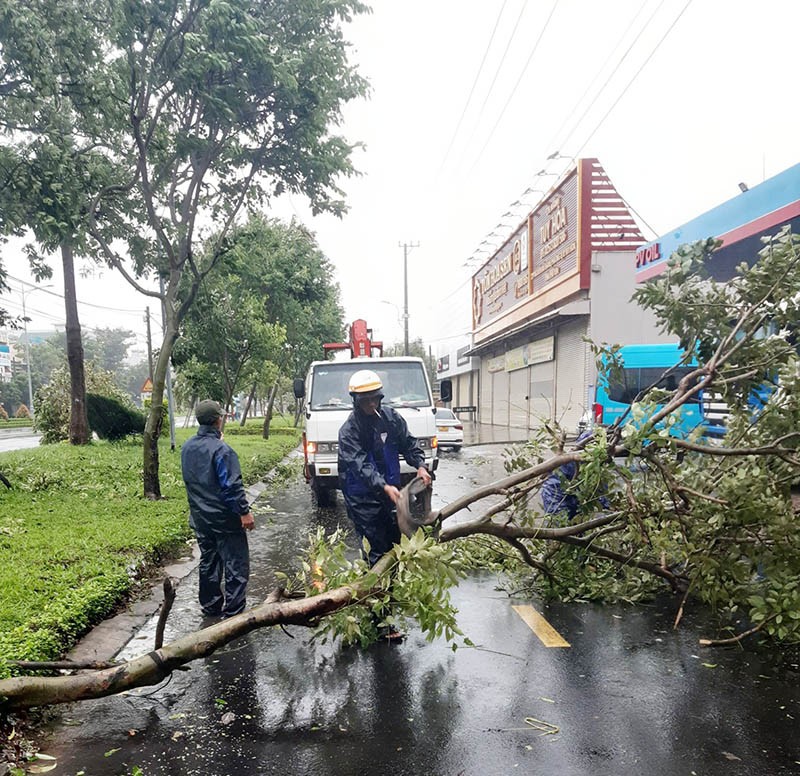 Cây xanh đổ trên đường Nguyễn Tất Thành, TP Tuy Hòa. Ảnh: TRẦN HỮU