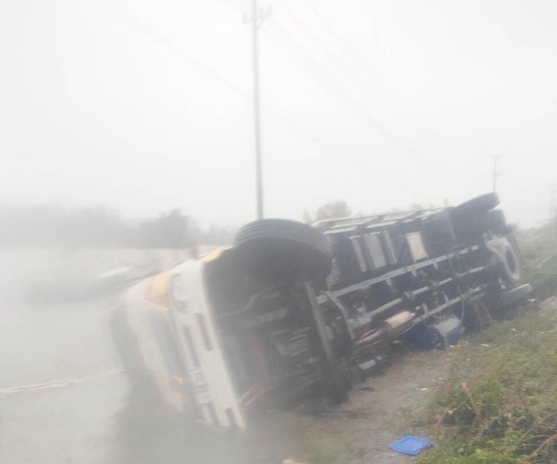 Bão làm lật xe ở xã Hòa Xuân Nam, thị xã Đông Hòa. Ảnh: CTV