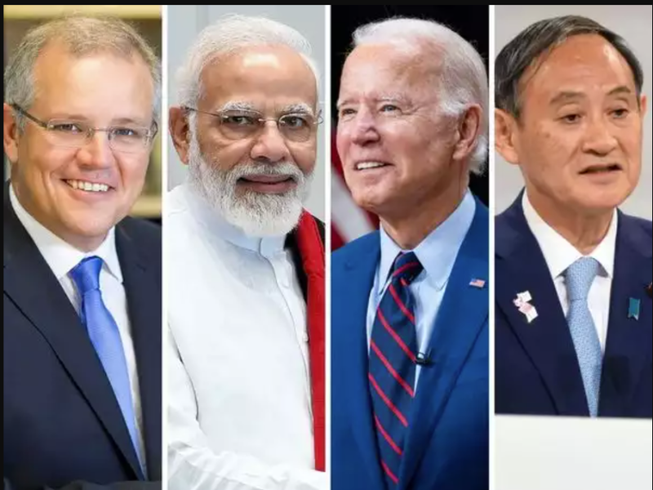 Tổng thống Mỹ Joe Biden, Thủ tướng Nhật Yoshihide Suga, Thủ tướng Ấn Độ Narendra Modi và Thủ tướng Úc Scott Morrison đã có cuộc họp trực tuyến qua màn hình lớn. Các lãnh đạo thảo luận về việc Trung Quốc áp lệnh trừng phạt đối với các sản phẩm của Úc, tăng cường hoạt động xung quanh quần đảo Senkaku của Nhật và gây hấn tại biên giới Ấn Độ ”, Cố vấn An ninh Quốc gia Mỹ Jake Sullivan cho biết trong một cuộc họp báo tại Washington sau cuộc hội đàm.