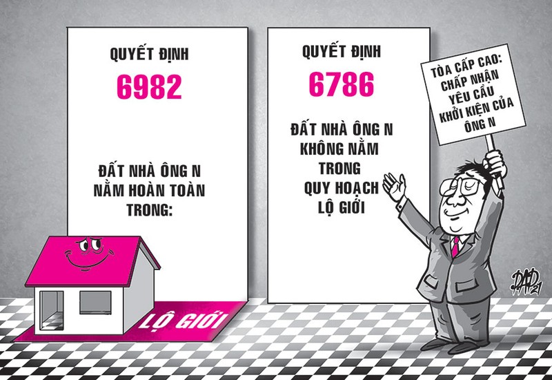 Từ đây, ông Nam đi kiện vì theo điều chỉnh quy hoạch thì đất nhà ông đã không còn trong lộ giới nữa.