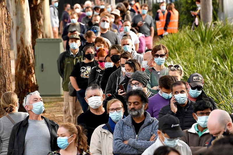 Người dân Úc xếp hàng chờ tiêm vaccine ở một trung tâm tiêm phòng