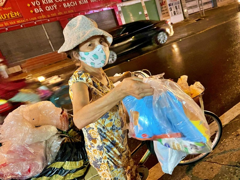 Chị Mai cho biết trong mùa dịch này, thấy nhiều người còn khổ hơn mình, không thể cầm lòng được nên cố gắng góp chút sức, giúp mọi người có bữa cơm. Trong quá trình khảo sát cùng nhóm, chị thấy và rất thương những người già neo đơn, mưu sinh bằng nghề bán vé số. Các cụ phải đi bán hằng ngày, bất kể mưa nắng để có đồng ra, đồng vào. Những ngày dịch vừa qua, các cụ phải ở nhà, không thể ra ngoài xin cơm từ thiện. Nhận được quà tận nhà, các cụ mừng lắm.