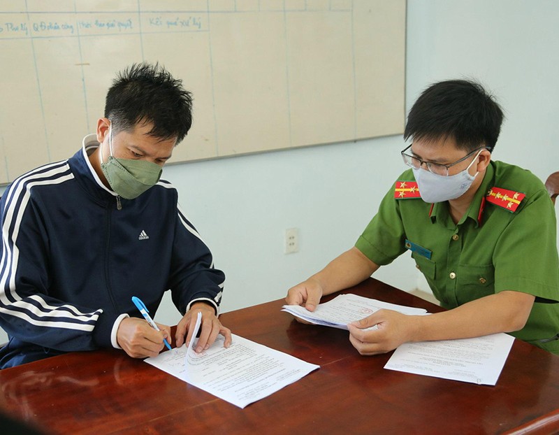 Cơ quan CSĐT Công an tỉnh Ninh Thuận lấy lời khai nghi can trong đường dây tín dụng đen. Ảnh: CACC