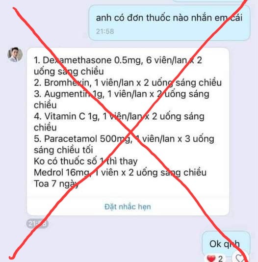 Toa thuốc cho F0 chứa kháng sinh Augmentin và thuốc kháng viêm Dexamethason lan truyền trên mạng.
