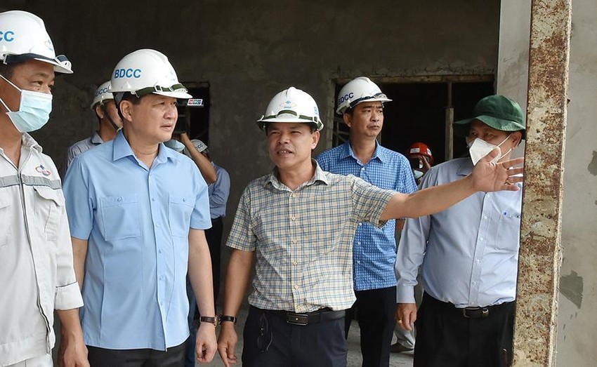 Phó Thủ tướng Lê Minh Khái đi kiểm tra tiến độ dự án BV Ung bướu Cần Thơ vào sáng 16-5. Ảnh: VGP |