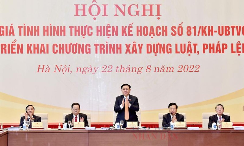 Sáng 22-8, Ủy ban Thường vụ Quốc hội (UBTVQH) và Chính phủ tổ chức Hội nghị đánh giá tình hình thực hiện Kế hoạch số 81/KH-UBTVQH15 ngày 5-11-2021 và triển khai chương trình xây dựng luật, pháp lệnh.