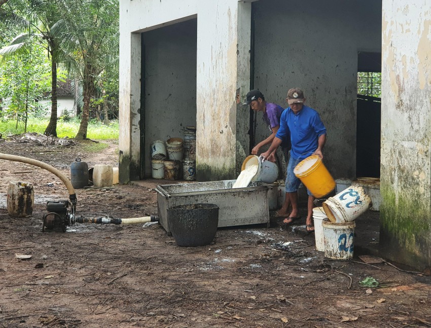 Những thùng mủ trắng được đổ vào khay mang lại niềm vui cho công nhân vì có thêm thu nhập. Nhưng kèm với đó là nỗi bất an về số phận khu đất trồng cao su này khi tháng 3-2021, UBND thị xã Trảng Bàng đã có thông báo thu hồi và giao đất lại cho UBND thị xã.