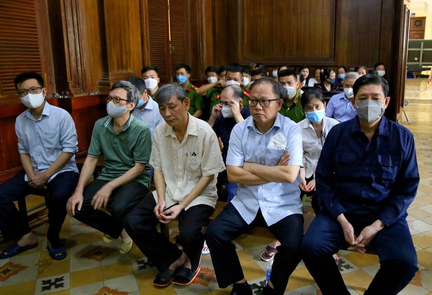 Các bị cáo tại phiên xử ngày 11-10. Ảnh: HOÀNG GIANG |