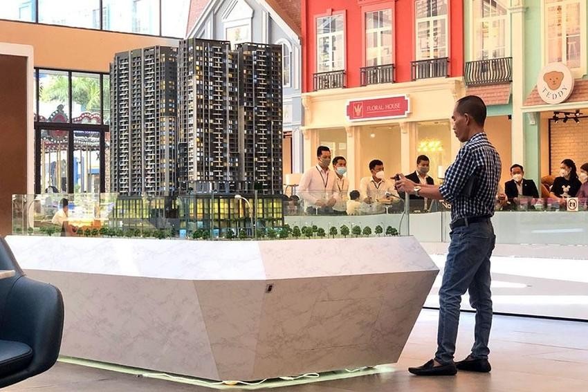 Khách tìm hiểu mua căn hộ. Ảnh:Q.H |