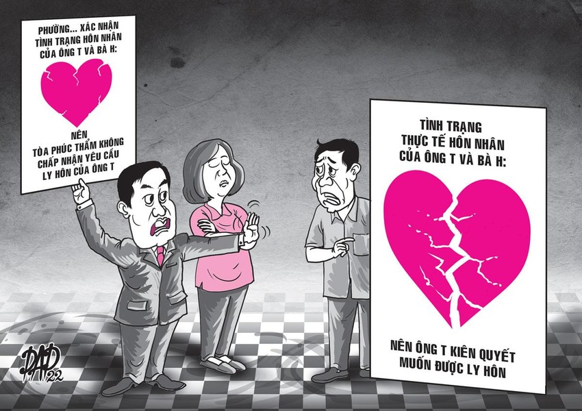 “Chúng tôi mâu thuẫn từ lâu nên ly thân nhiều năm nay. Hôn nhân không thể cứu vãn, tôi muốn ly hôn. Thế nhưng không hiểu sao tòa lại căn cứ văn bản của ủy ban phường để cho rằng chúng tôi không có mâu thuẫn gì để bác đơn ly hôn của tôi” - ông T nói.